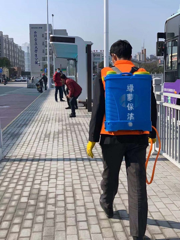 安排專人對公交站臺(tái)、車輛內(nèi)部進(jìn)行消殺滅菌工作